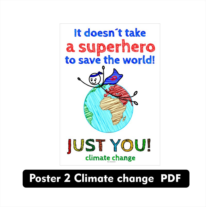 Op deze pagina staan vijf afbeeldingen over het klimaat die als kaart, affiche of poster afgedrukt kunnen worden. De afbeeldingen zijn opgemaakt in PDF op A2, A3, A4 en A5-formaat. Je kunt ze op A5-formaat uitprinten om als kaarten uit te delen, of uitprinten op A3- of A2-formaat om als poster in school op te hangen. Alle afbeeldingen mogen voor de eigen school gebruikt worden om uit te printen en op te hangen of mee te geven bij een dag, week of project over het klimaat. De cliparts mag je vrij gebruiken bijvoorbeeld een aankondiging op de website of voor het maken van een eigen les over het klimaat.