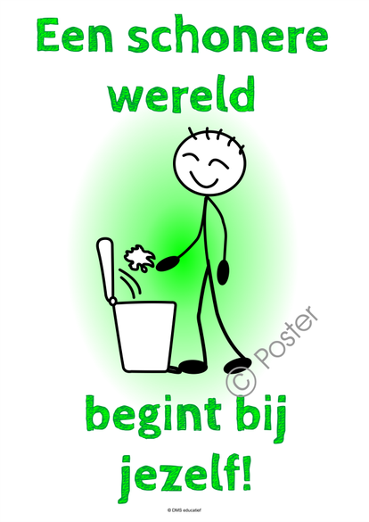 Voor een nette en zorgzame leeromgeving. Deze A3-poster uit de serie ‘Verbeter de wereld, begin bij jezelf’ herinnert leerlingen op een positieve manier aan het belang van orde, zorg en verantwoordelijkheid. Korte, krachtige zinnen stimuleren bewust gedrag in de klas én daarbuiten.