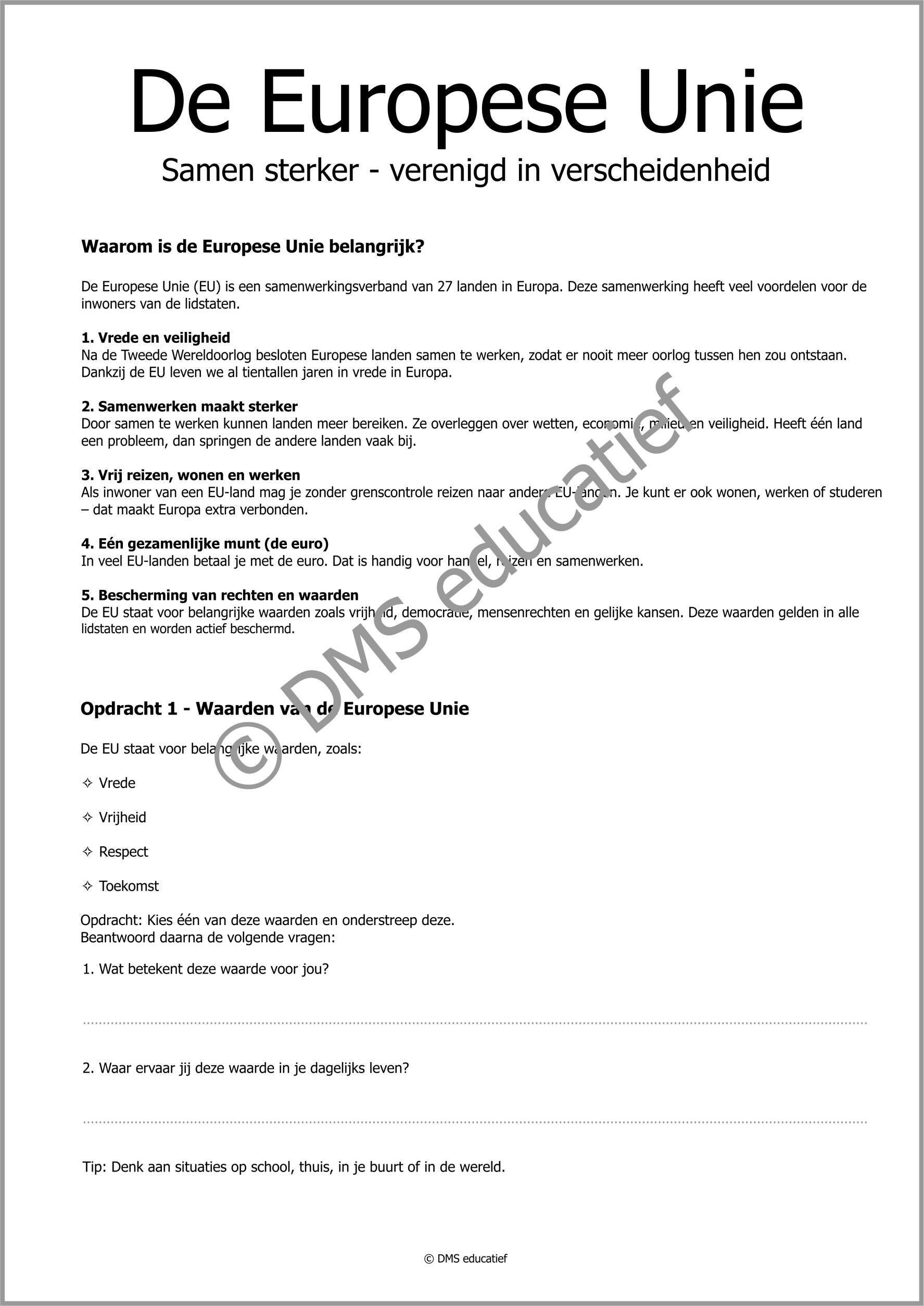 Werkbladen – De Europese Unie