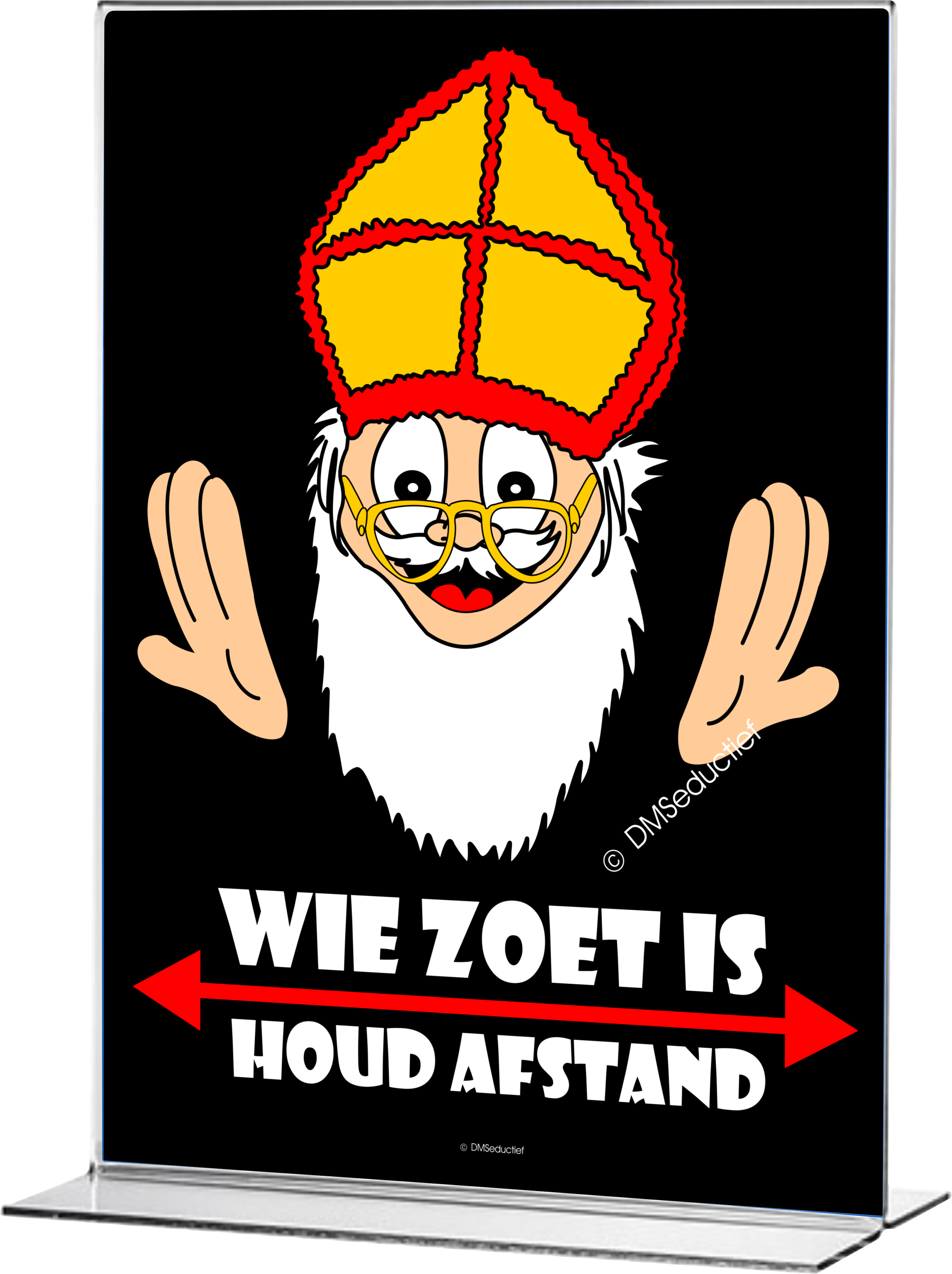 Raamposter Sinterklaas 'Wie zoet is, houdt afstand'