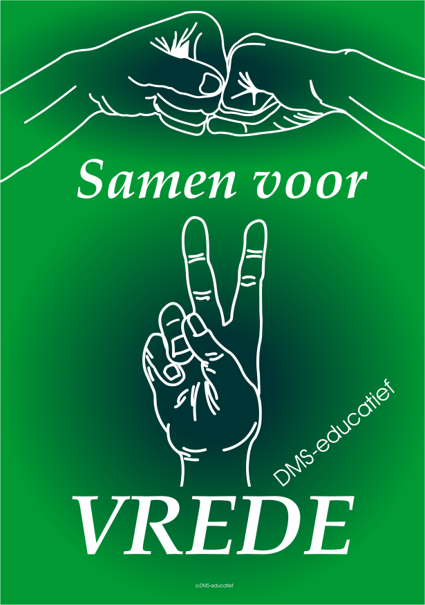 De poster is aan beide kanten bedrukt. Aan de ene kant in het Nederlands 'Samen voor vrijheid' en aan de andere kant in het Engels 'Together for freedom'.