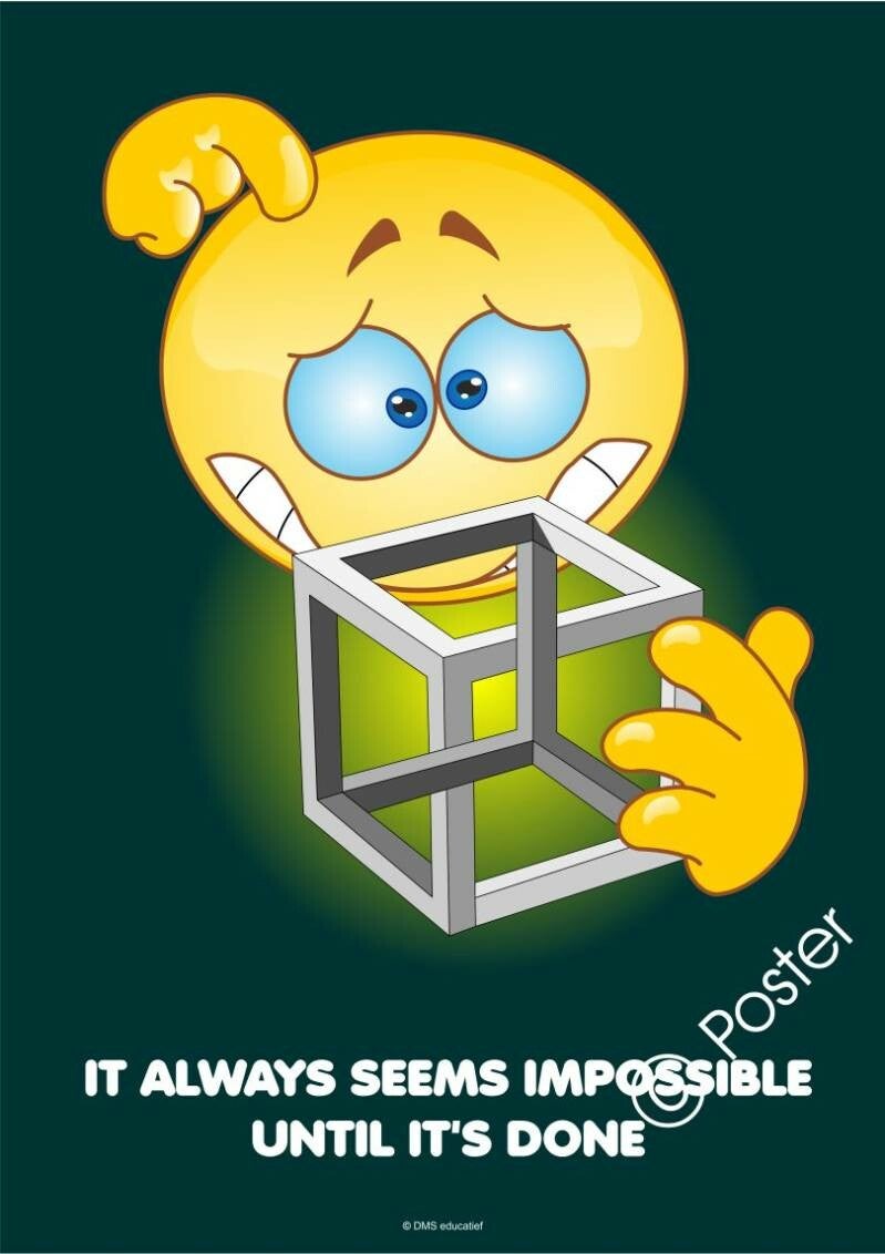 De tekst op de poster 'It always seems impossible':